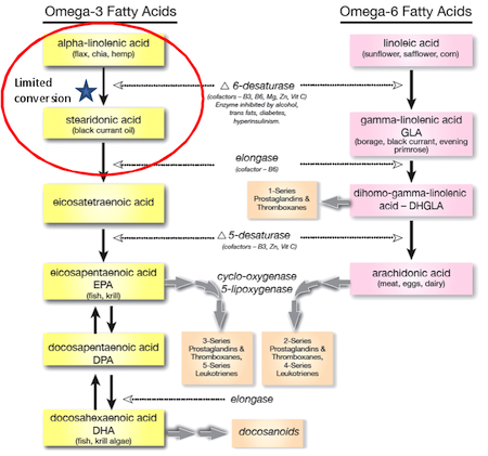 And it’s not something that can be remedied by eating more fish. You would have to eat between 6 and 24 servings of fish each WEEK in order to get the right amounts of omega-3 fats.